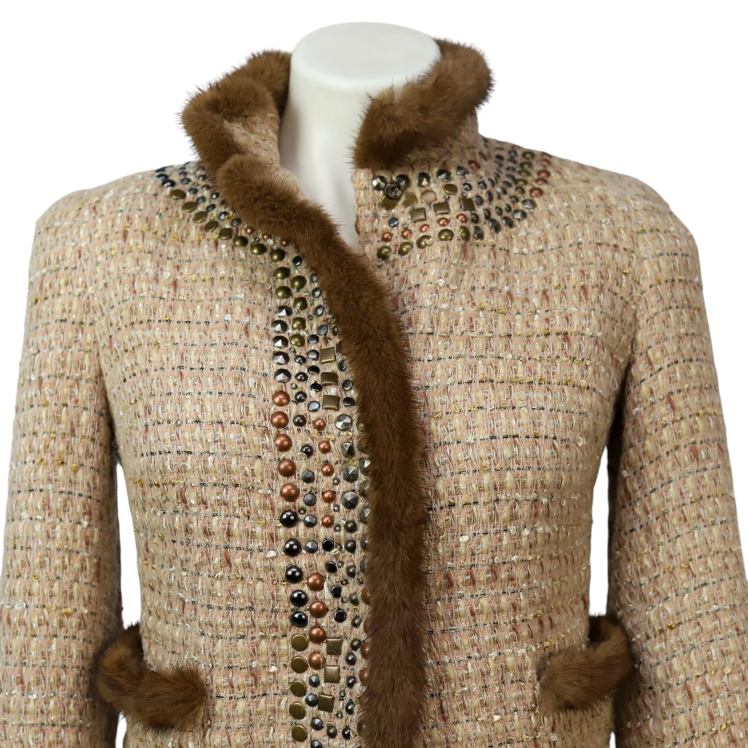 tweed rabbit fur trim jacket